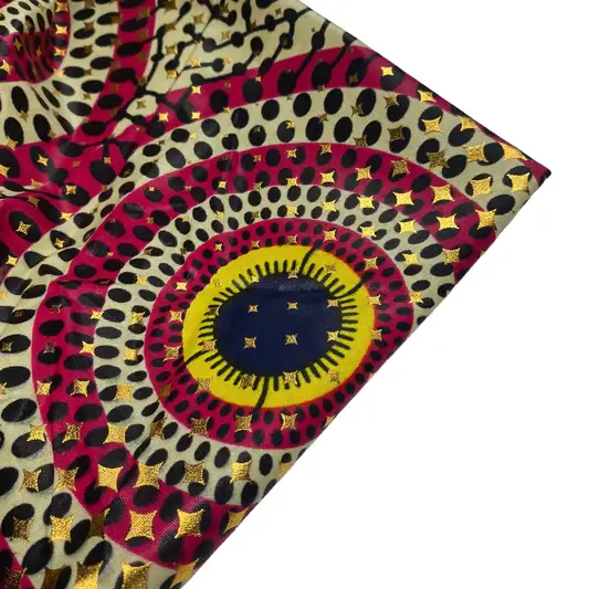 Metallic foil can be applied to a wide range of African print fabrics, which are known for their bold and colorful patterns. You can choose from various African print designs, such as Ankara, Kente, Dashiki, or Adire, and apply metallic foil in different colors, including gold, silver, rose gold, and more. This allows for a diverse array of design possibilities.